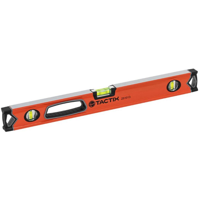 Строительный уровень Tactix длиной 600 мм предназначен для точного контроля горизонтальных и вертикальных поверхностей на строительных и ремонтных объектах. Этот инструмент незаменим при выравнивании стен, укладке плитки, монтаже дверных и оконных блоков, а также при выполнении других задач, где требуется соблюдение геометрической точности.